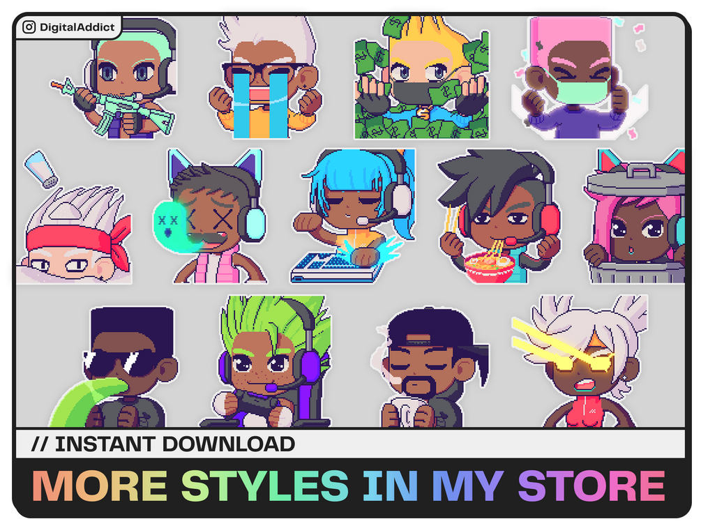 I'm artist - DigitalAddict, I take pride in meticulously designing and illustrating each pixel art emote for gamers from all walks of life.