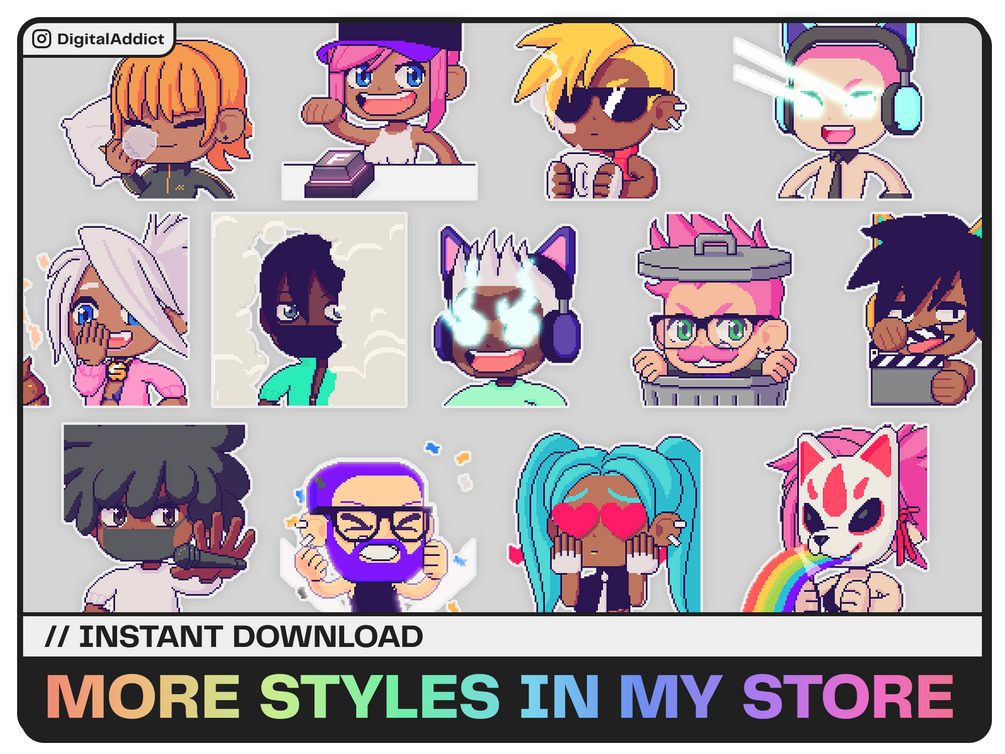 I'm artist - DigitalAddict, I take pride in meticulously designing and illustrating each pixel art emote for gamers from all walks of life.